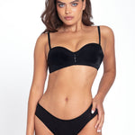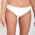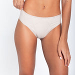 - Diseño tipo tanga con franjas frontales para control leve