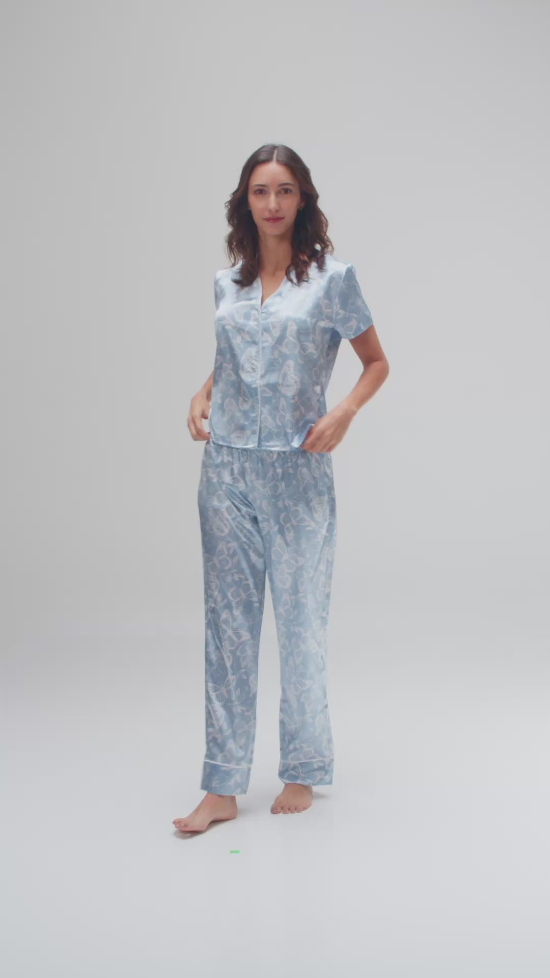 Disfruta de la suavidad y elegancia de nuestro Pijama Conjunto. Incluye camisa de manga corta y pantalón confeccionados en tela satin ligera y delicada, ideal para descansar con comodidad y estilo cada noche.